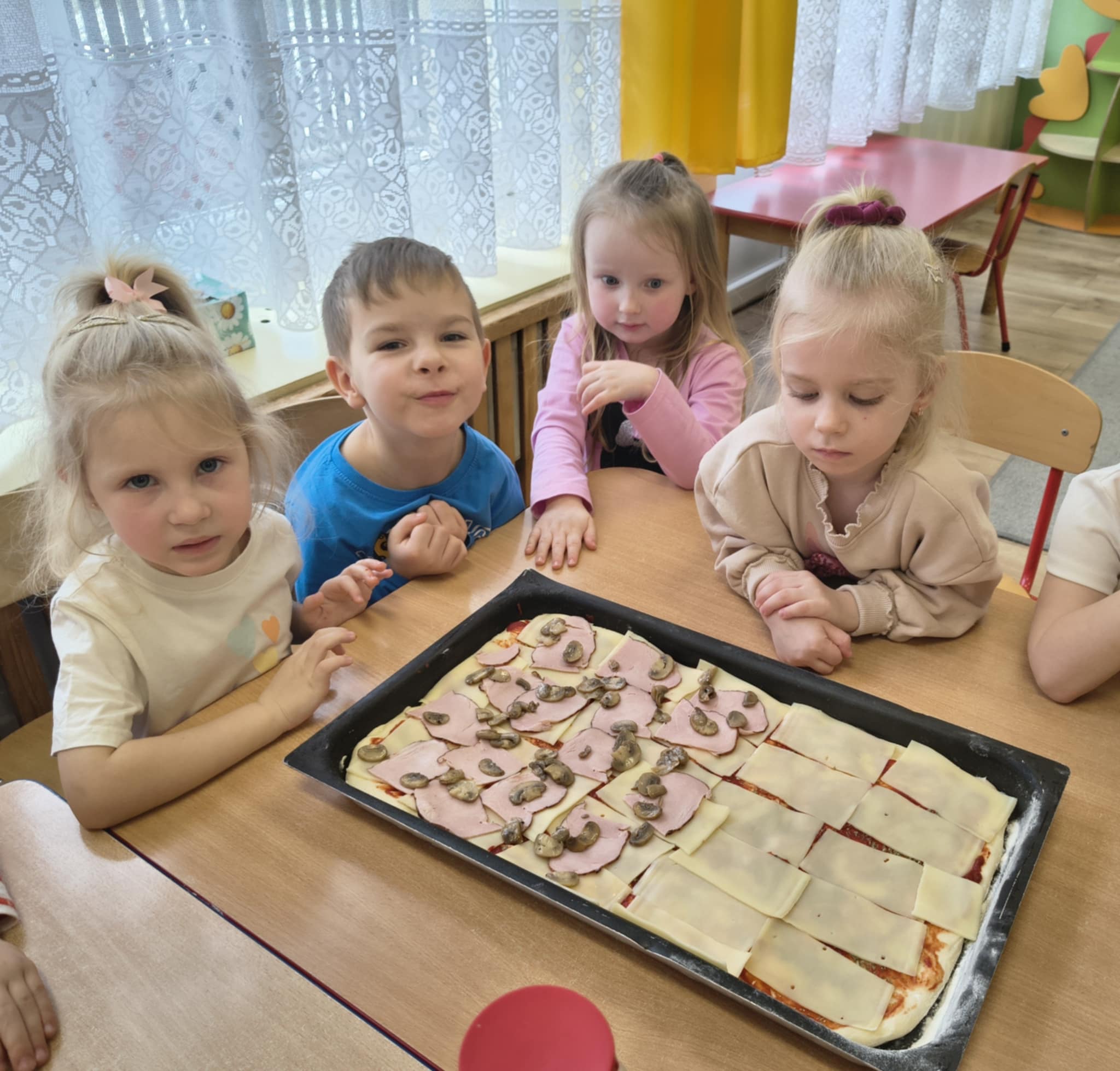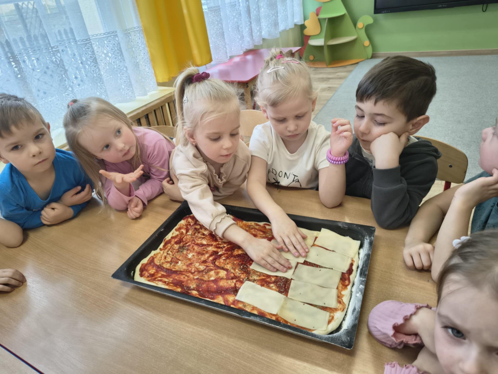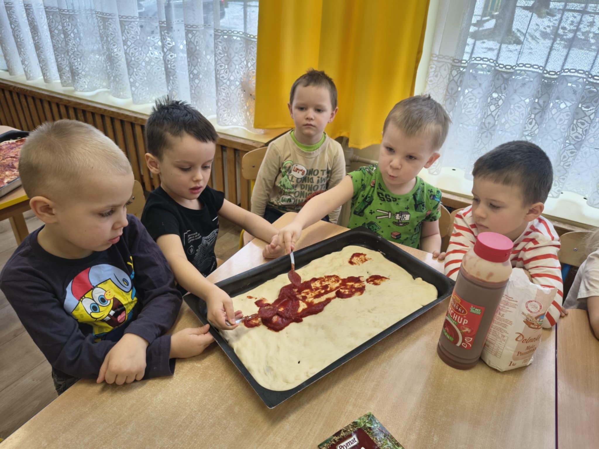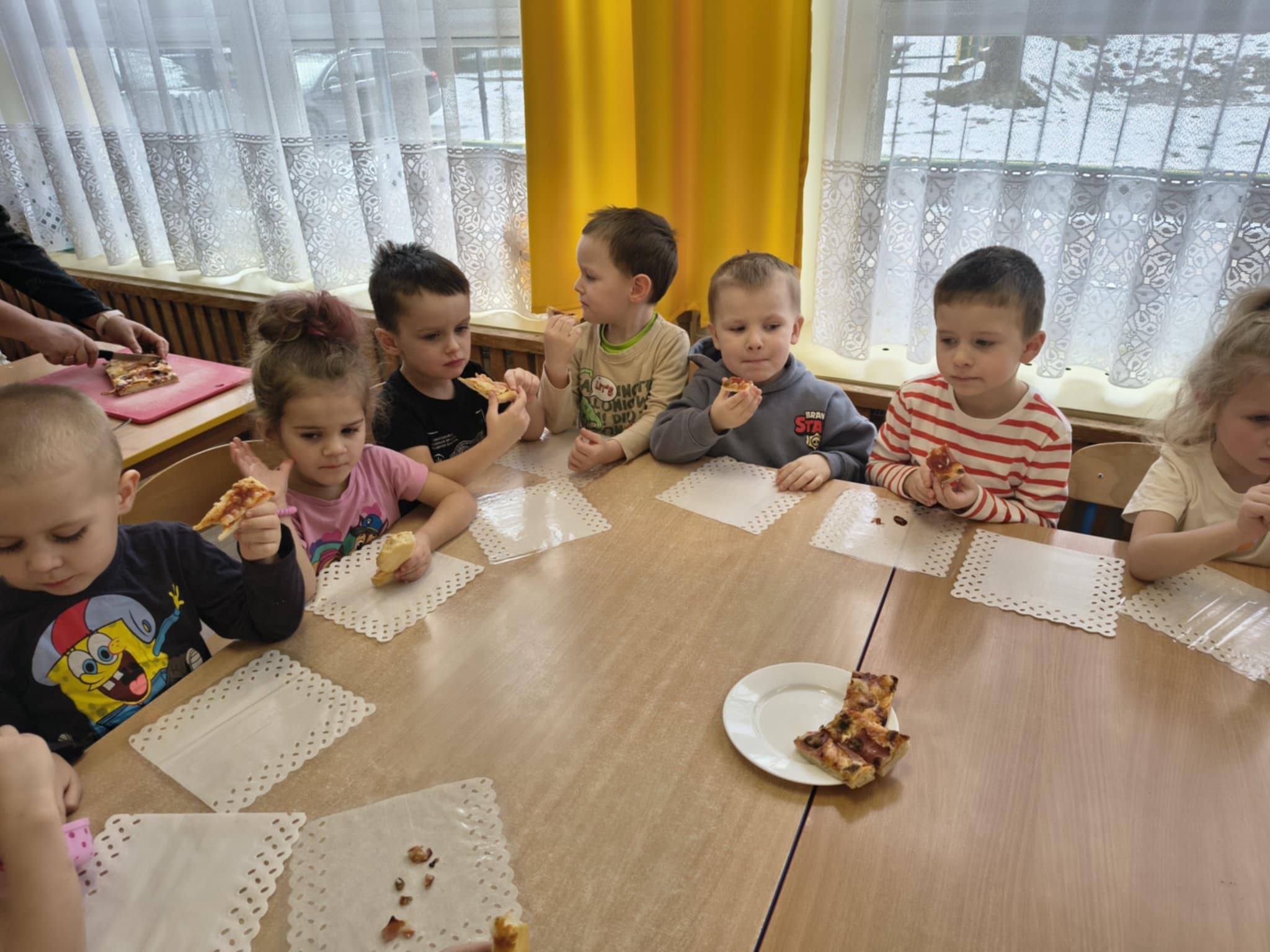 9 lutego z okazji Dnia Pizzy nasze przedszkolaki zamieniły się w prawdziwych małych kucharzy. Dzieci z ogromnym zaangażowaniem przygotowywały pizzę – smarowały ciasto sosem i wybierały ulubione składniki. Podczas wspólnej zabawy nie zabrakło rozmów skąd pochodzi pizza i jakie produkty są potrzebne do jej przygotowania. Było to dzień pełen radości, uśmiechów i pysznych smaków.