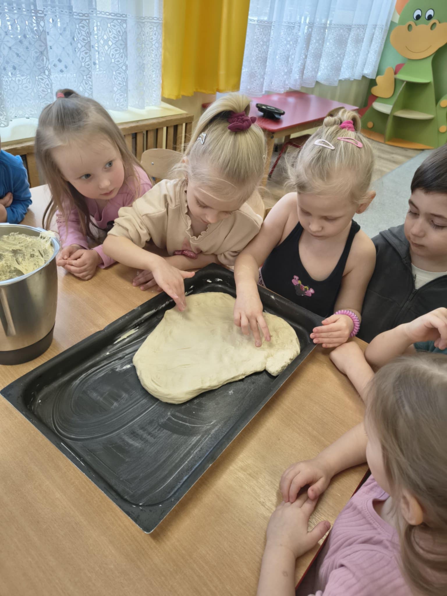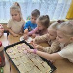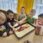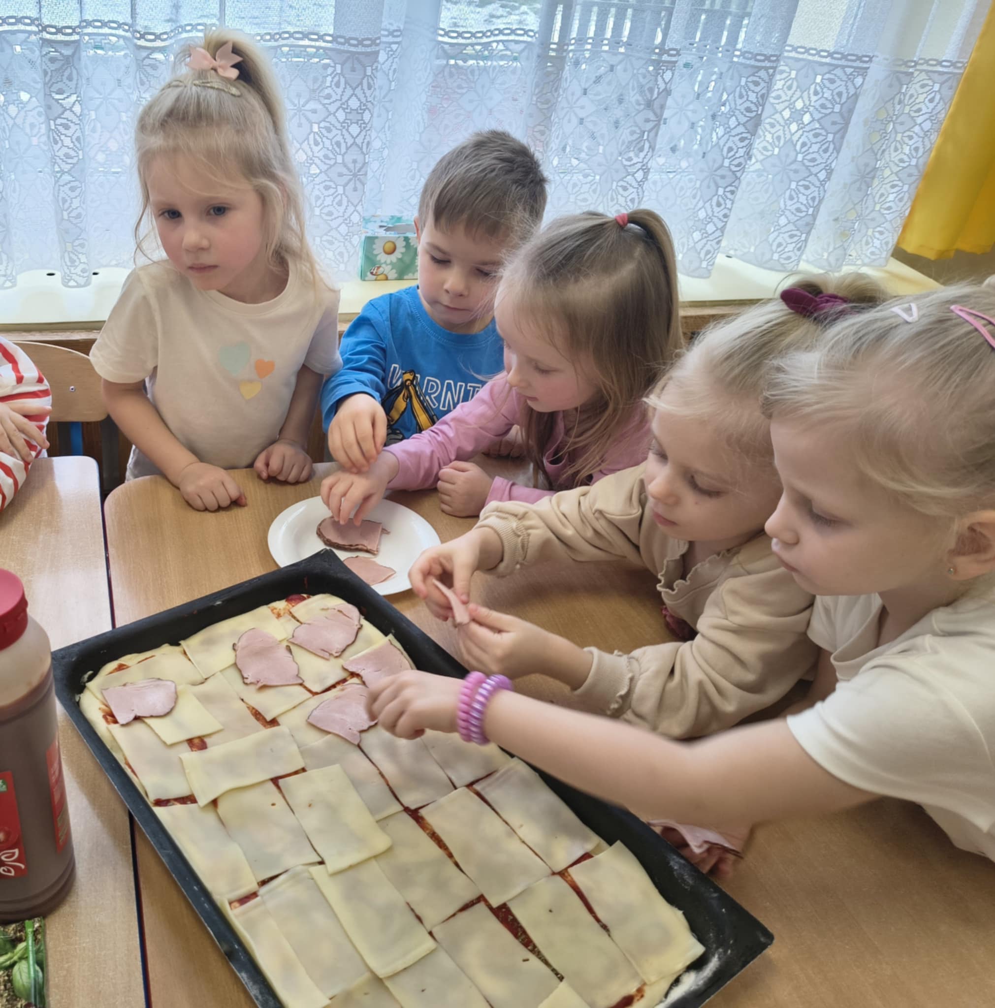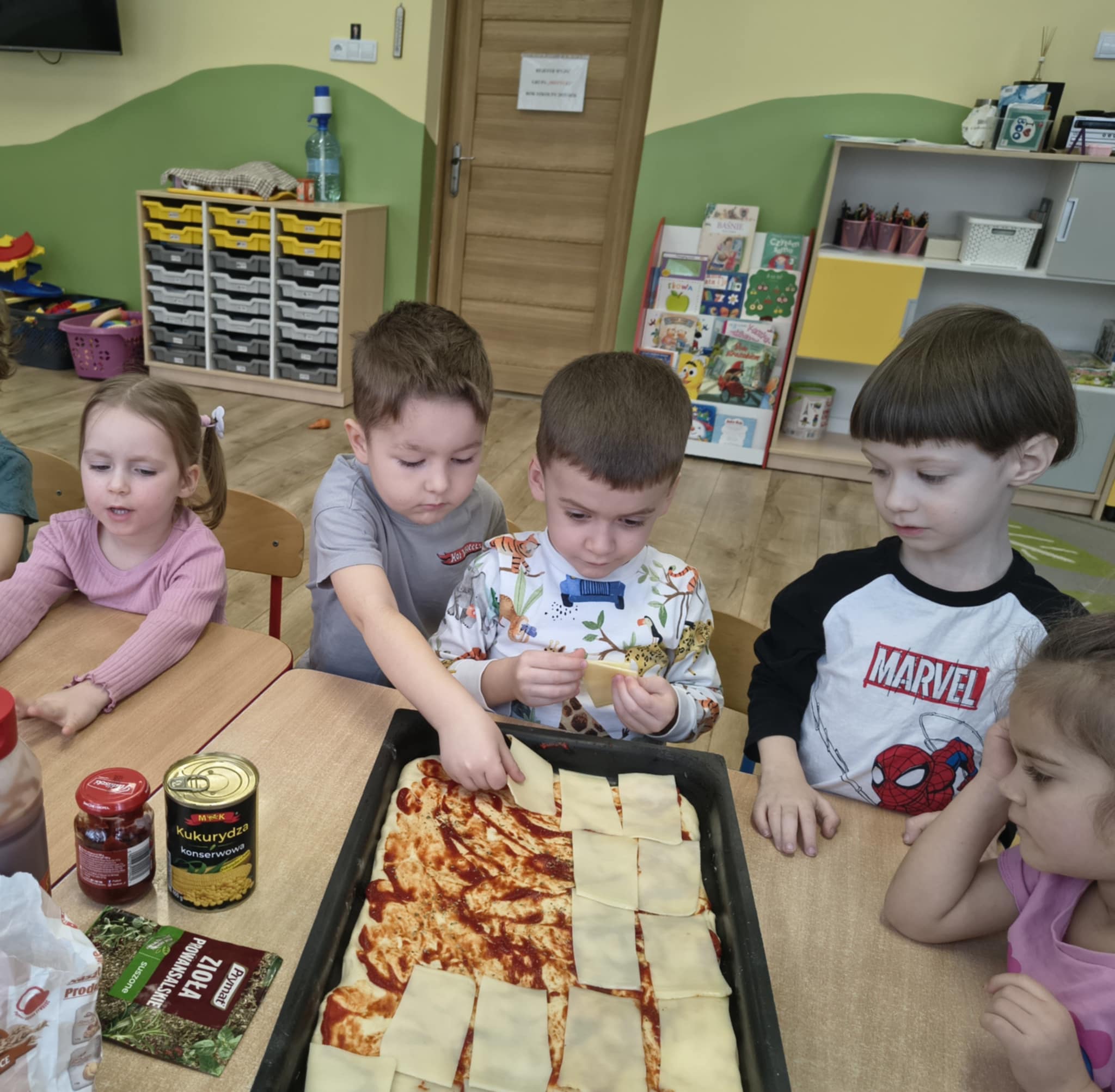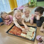 9 lutego z okazji Dnia Pizzy nasze przedszkolaki zamieniły się w prawdziwych małych kucharzy. Dzieci z ogromnym zaangażowaniem przygotowywały pizzę – smarowały ciasto sosem i wybierały ulubione składniki. Podczas wspólnej zabawy nie zabrakło rozmów skąd pochodzi pizza i jakie produkty są potrzebne do jej przygotowania. Było to dzień pełen radości, uśmiechów i pysznych smaków.