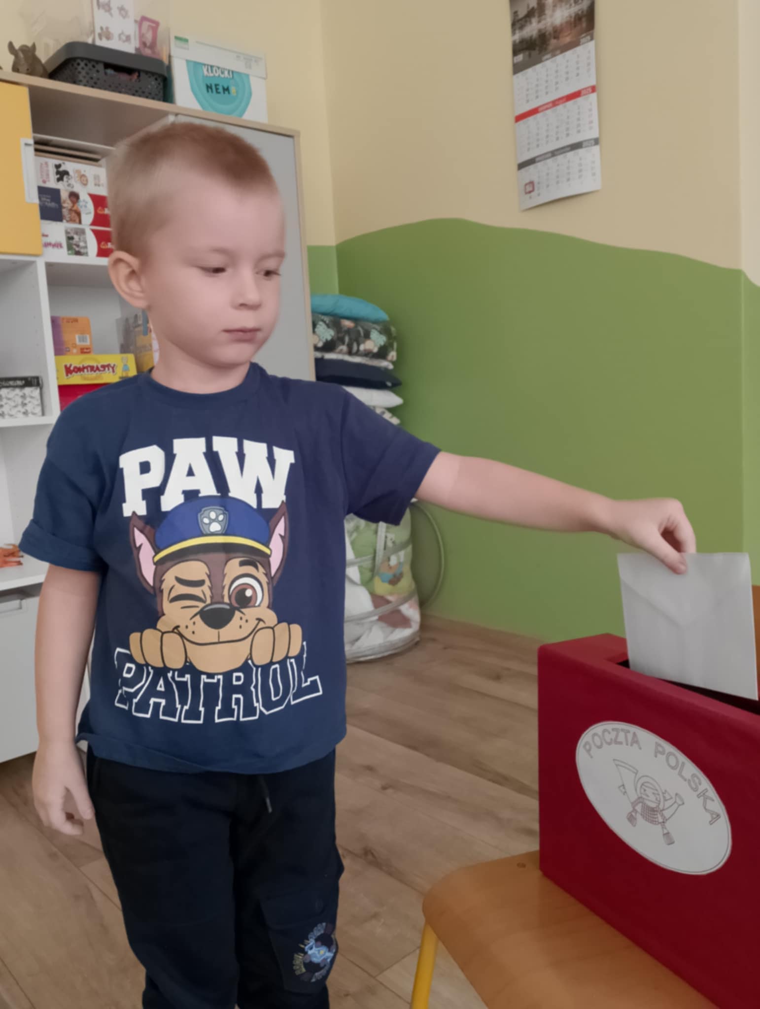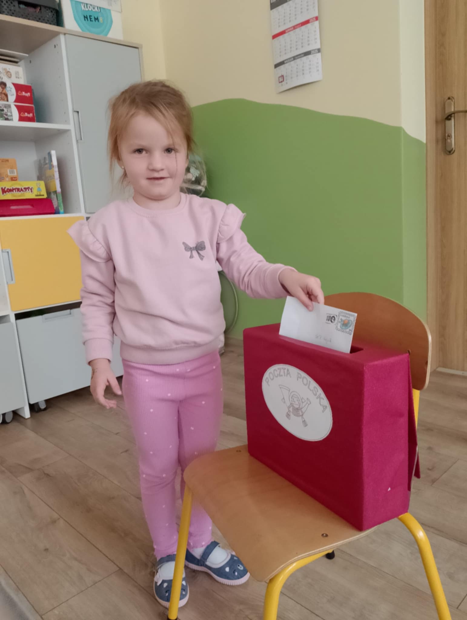9 Października grupa „Motylki” obchodziła Światowy Dzień Poczty i Znaczka Pocztowego. Celem zajęć było poznanie zawodu listonosza i utrwalenie wiadomości o tym, co musi zawierać list oraz rozwijanie sprawności manualnej i ruchowej. Dzieci kolorowały swoje znaczki, które następnie przyklejały na kopercie. Na zakończenie zajęć wzięły udział w zabawie ruchowej, niczym prawdziwi listonosze, pokonywały tor przeszkód, by dostarczyć list do skrzynki. To był dzień pełen uśmiechu, ciekawych doświadczeń i wspólnej zabawy.