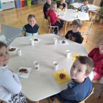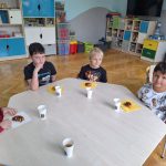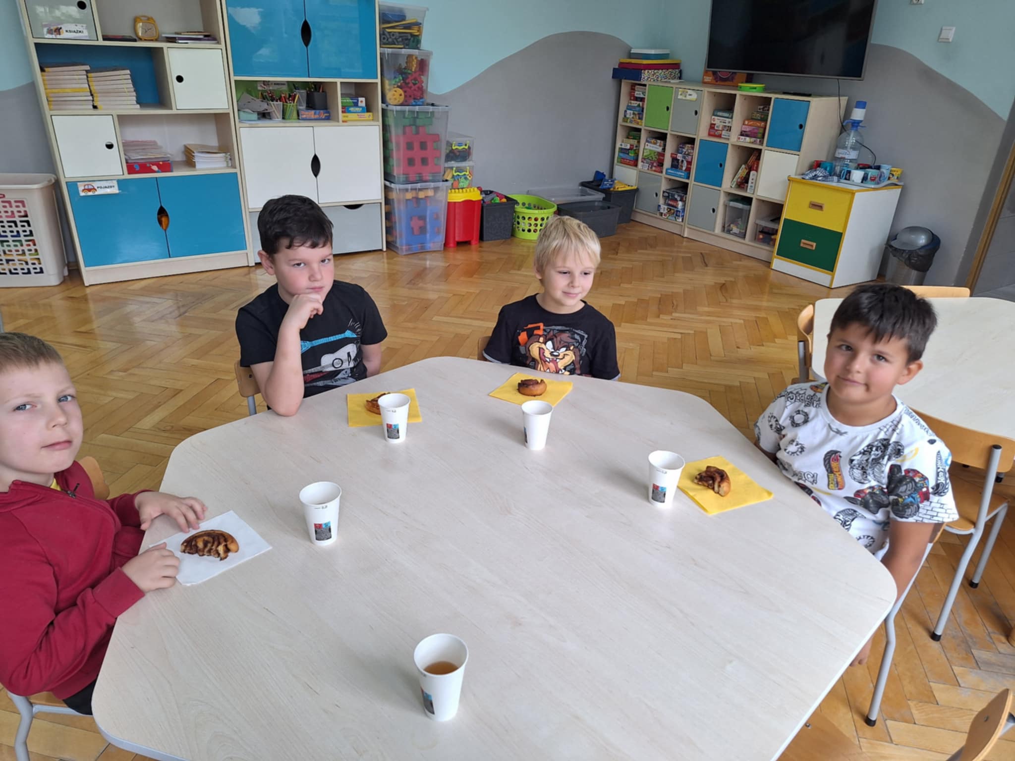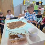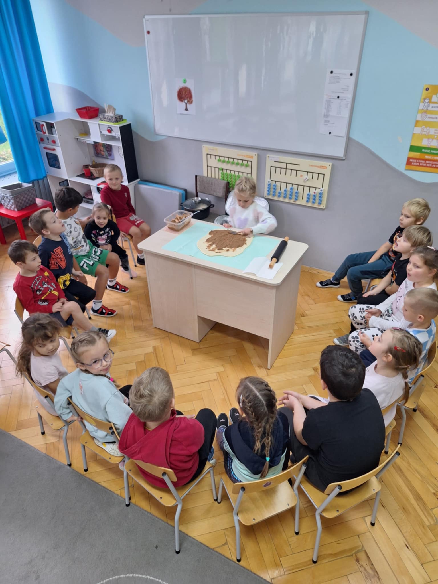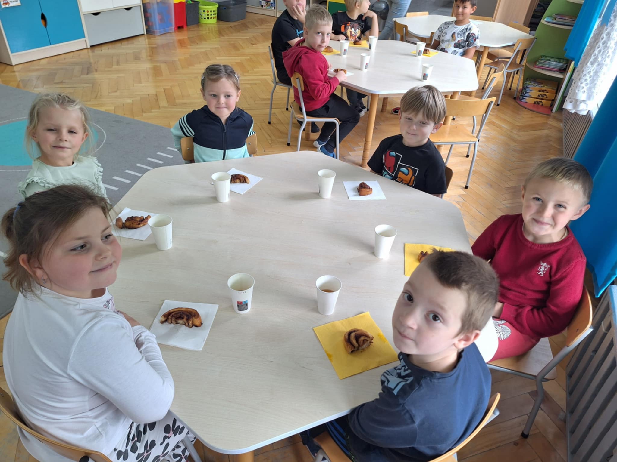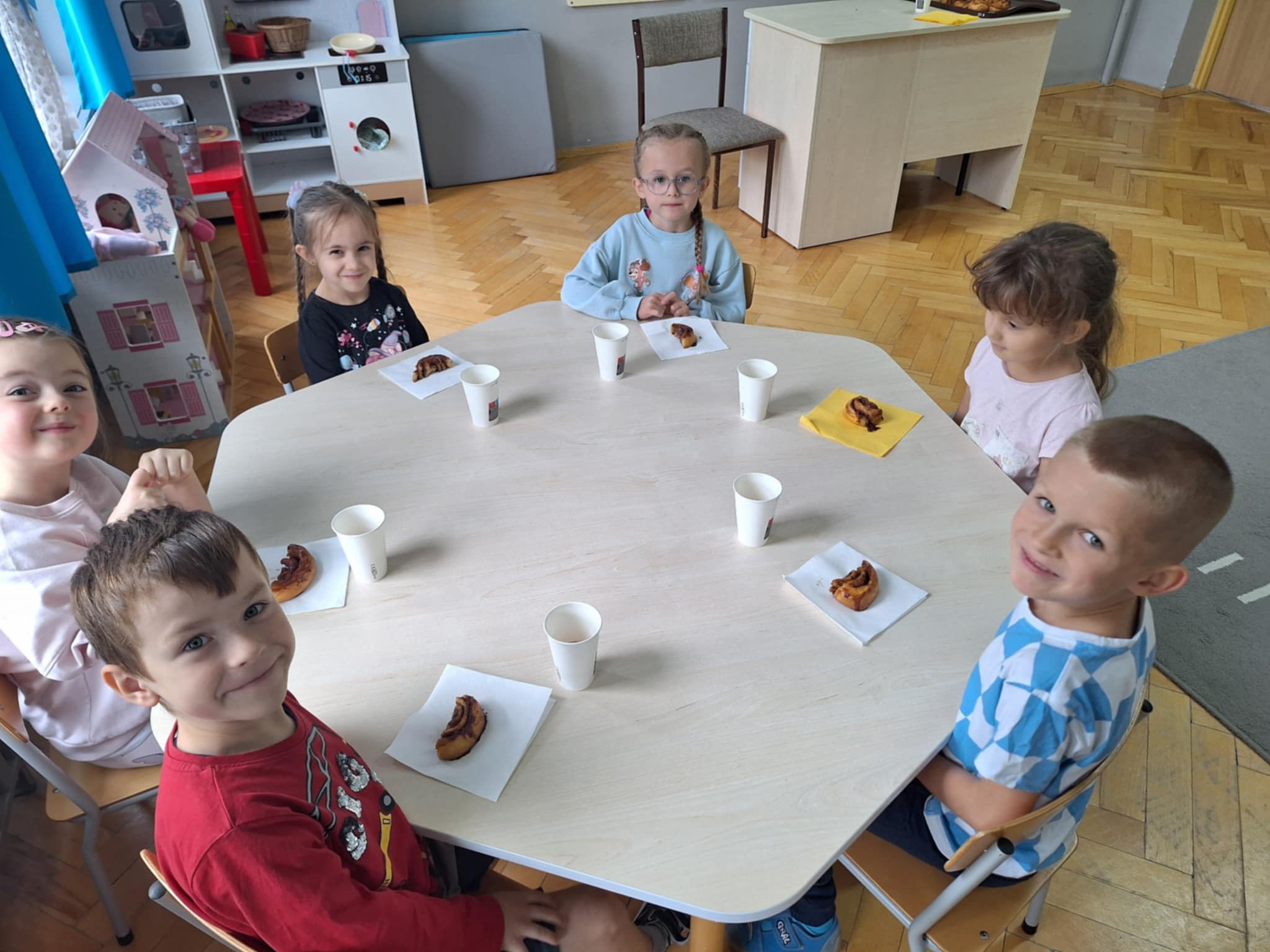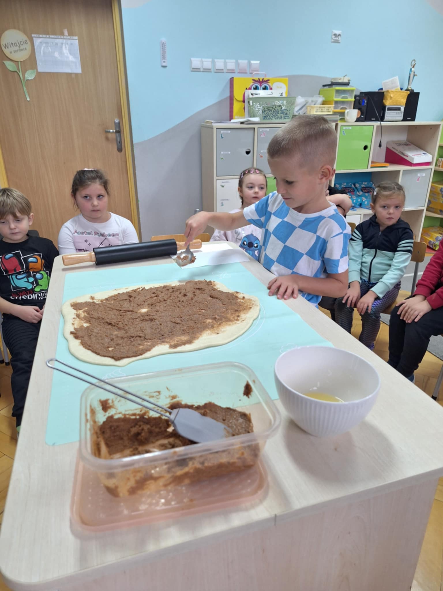 W minionym tygodniu w naszej grupie unosił się cudowny zapach cynamonu! Dzieci wspólnie piekły pyszne cynamonki, poznając przy tym składniki i etapy przygotowania ciasta. To było prawdziwe kulinarne doświadczenie, pełne radości i współpracy. Upieczone bułeczki smakowały wyśmienicie, zwłaszcza w towarzystwie aromatycznej, jesiennej herbatki. To był wspaniały, pachnący i bardzo smakowity dzień!