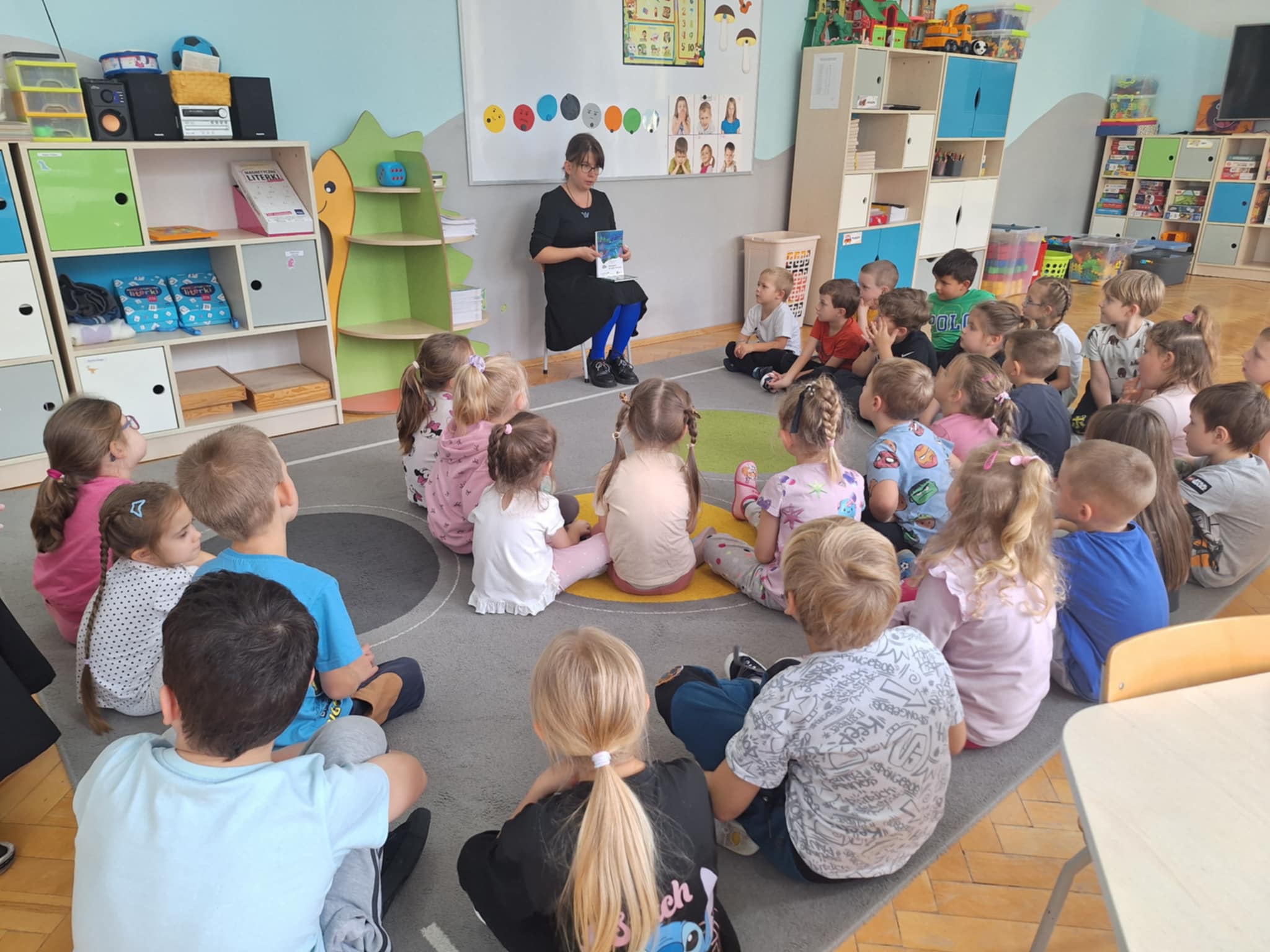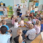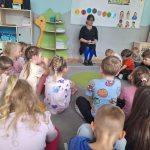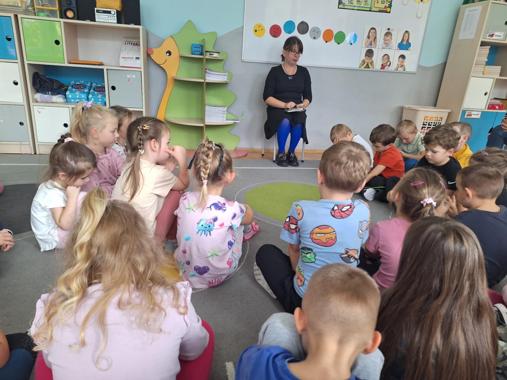 Grupy „Jagódki” i „Muzykanci” miały wspaniałą okazję uczestniczyć w wyjątkowym spotkaniu z panią Katarzyną Terchą-Frankiewicz. Nasz gość w niezwykle ciekawy sposób opowiadał dzieciom legendy pochodzące z naszego regionu. Przedszkolaki z ogromnym zainteresowaniem słuchały barwnych opowieści o dawnych czasach, bohaterach i miejscach, które kryją w sobie niezwykłe tajemnice. Dzięki temu spotkaniu dzieci nie tylko przeniosły się w świat wyobraźni, ale także mogły lepiej poznać historię i tradycje swojej małej ojczyzny.