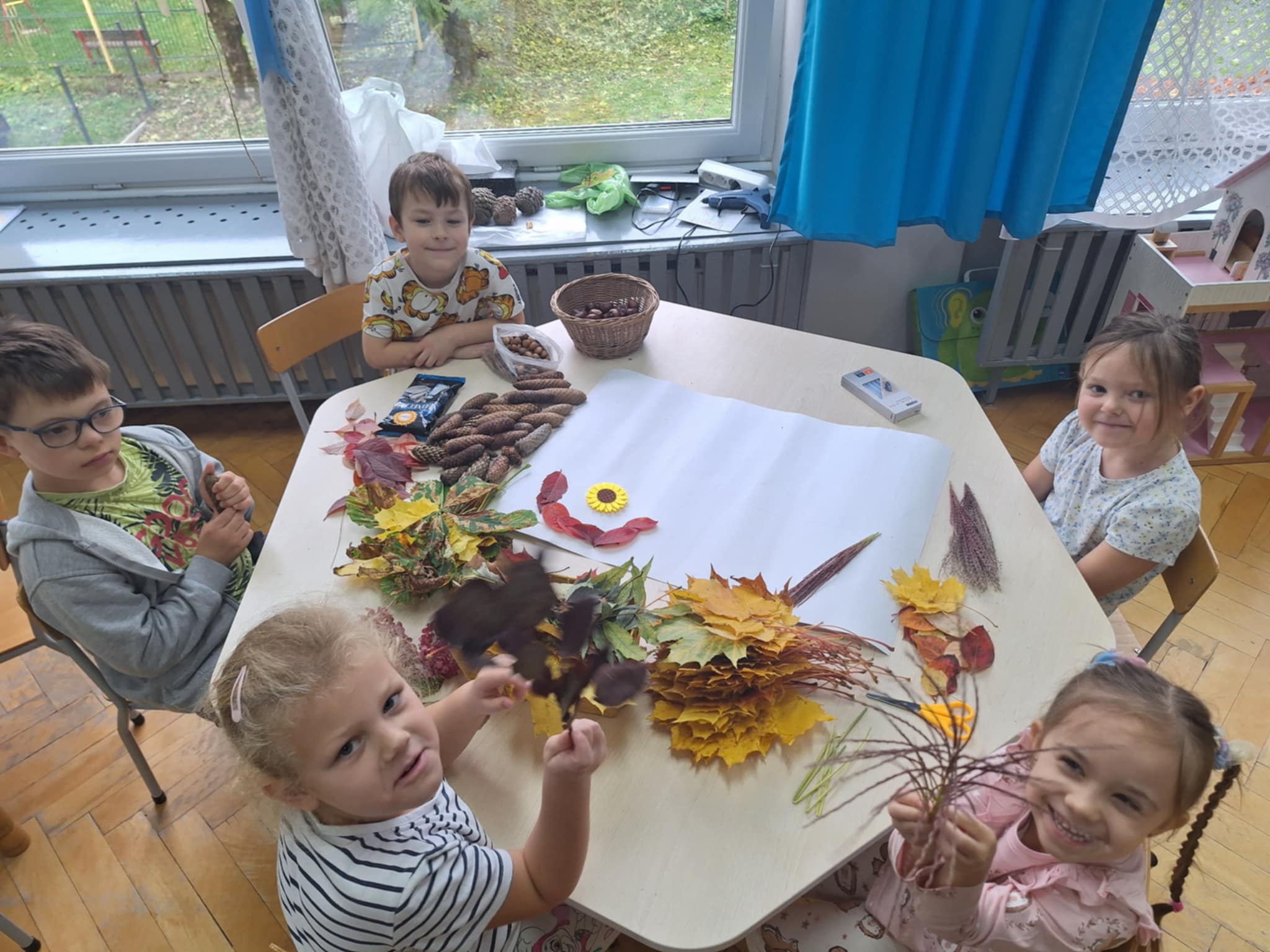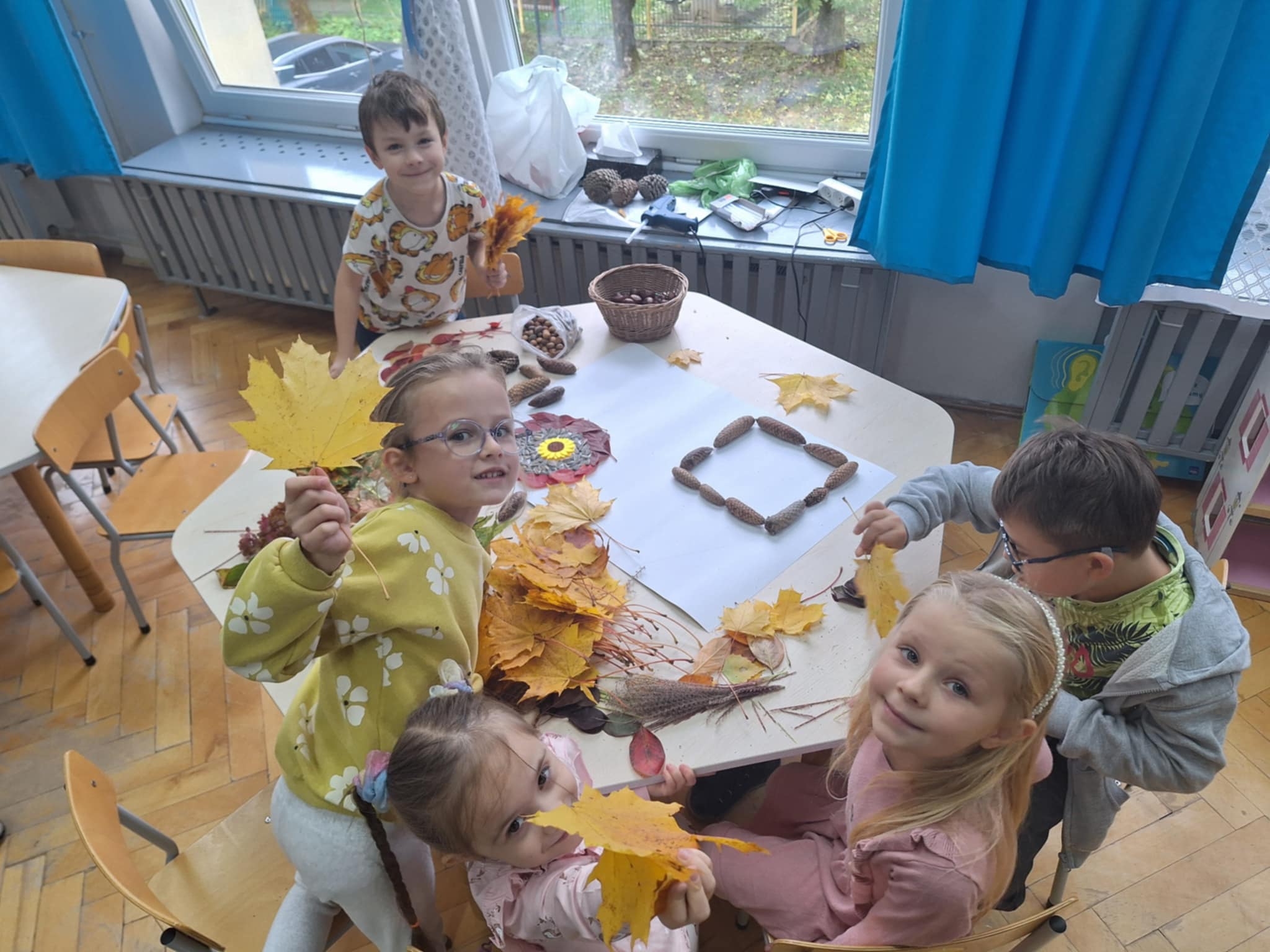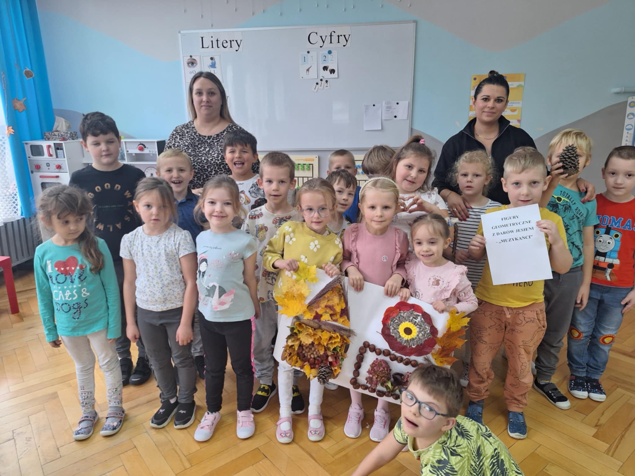 W ramach realizacji Rocznego Planu Pracy przedszkola dzieci z grupy „Muzykanci” tworzyły figury geometryczne z naturalnych materiałów – liści, kasztanów, żołędzi, szyszek i innych darów jesieni. Zabawa była doskonałą okazją do rozwijania wyobraźni, zdolności manualnych oraz utrwalania wiadomości o figurach geometrycznych. Dzieci z radością odkrywały, że matematyka może kryć się w otaczającej nas przyrodzie!