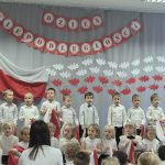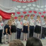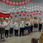 W naszym przedszkolu jak co roku obchodziliśmy Narodowe Święto Niepodległości. W uroczystości wzięła udział cała społeczność przedszkolna. Każda grupa zaprezentowała piosenkę patriotyczną. Odświętne stroje, rekwizyty i dekoracja uświetniły całą uroczystość. Po prezentacji pieśni patriotycznych włączyliśmy się do akcji „Szkoła do hymnu” organizowanej przez Ministerstwo Edukacji Narodowej i wspólnie odśpiewaliśmy „Mazurek Dąbrowskiego”.