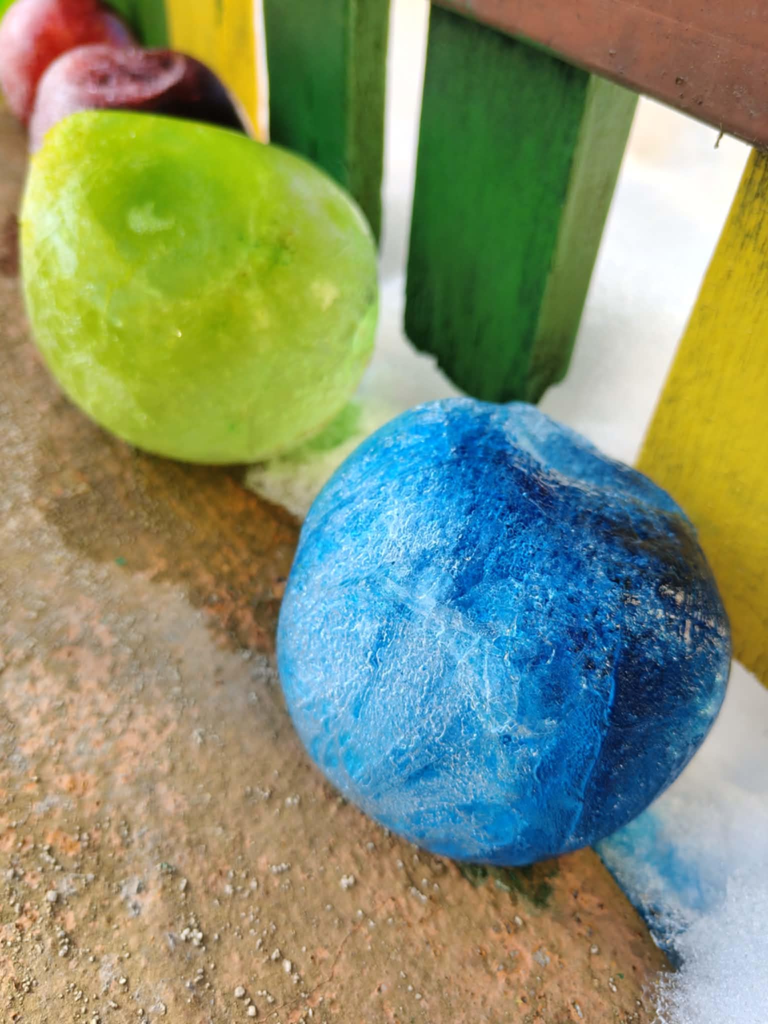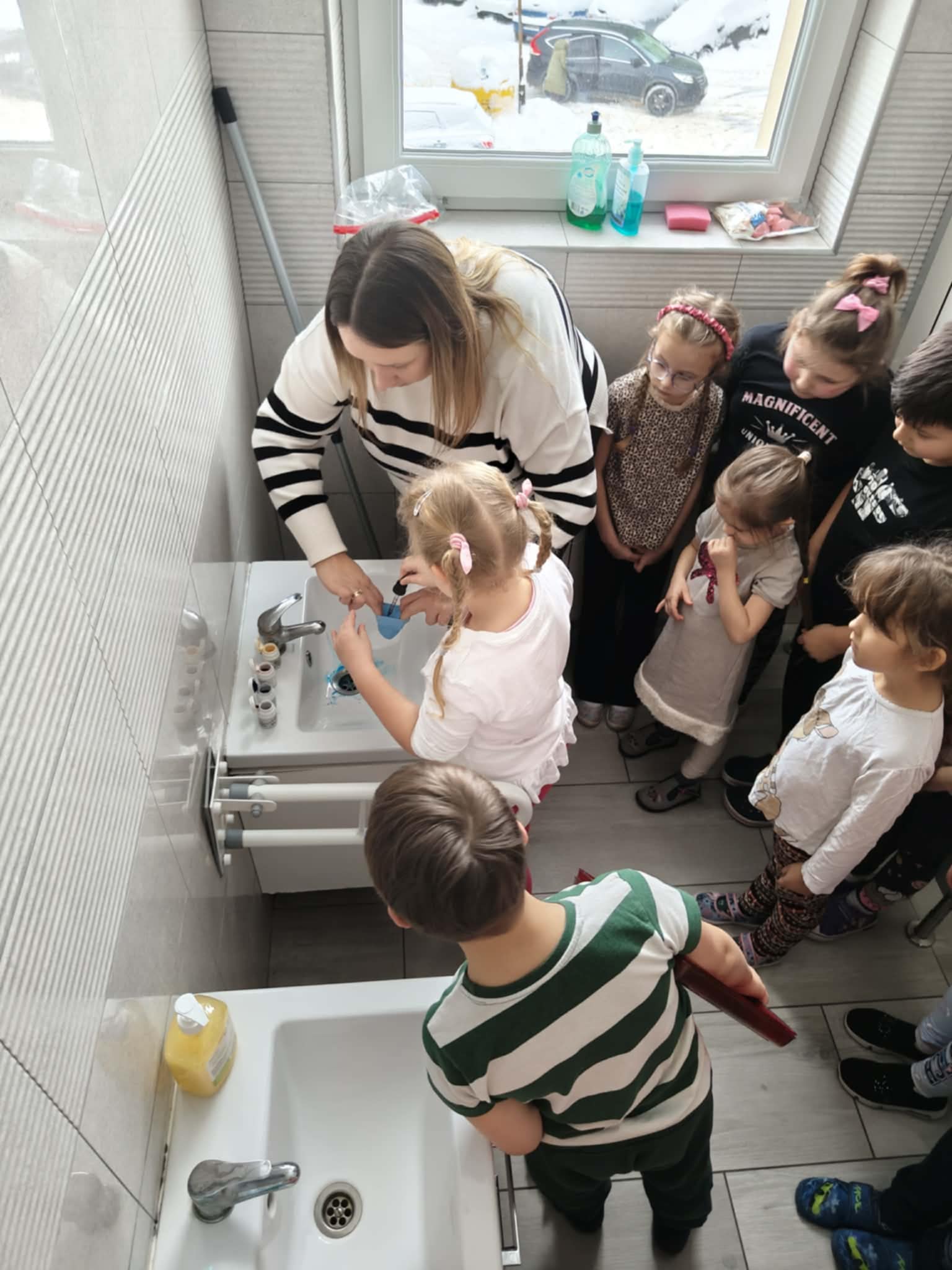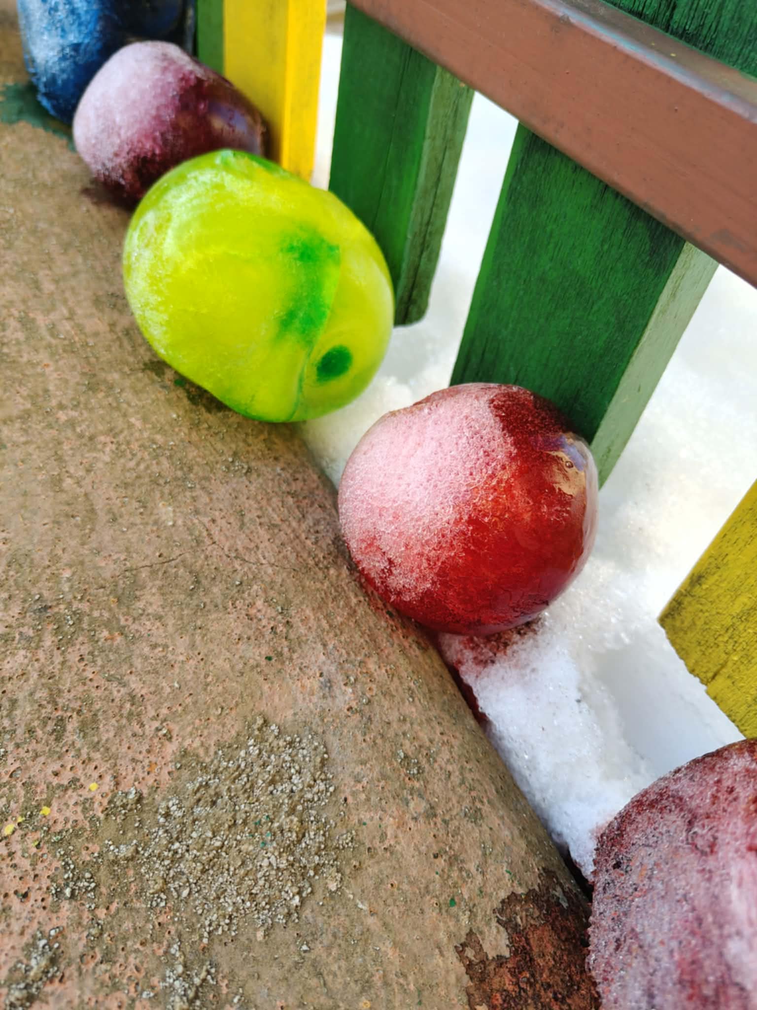 Kilka dni temu dzieci z grupy Muzykanci wzięły udział zimowej zabawie badawczej. Wspólnie przygotowaliśmy kolorowe kule – do balonów wlaliśmy wodę z barwnikami, a następnie wystawiliśmy je na zewnątrz, aby mogły zamarznąć. Mróz wykonał swoją pracę, a po zdjęciu balonów naszym oczom ukazały się piękne, lodowe kule w intensywnych kolorach. Dzieci z ogromnym zainteresowaniem obserwowały proces zamarzania wody, zmiany jej stanu skupienia oraz mieszanie się barw. Zabawa była doskonałą okazją do rozwijania ciekawości świata, wrażliwości estetycznej oraz do nauki poprzez bezpośrednie doświadczanie. Kolorowe kule stały się nie tylko zimową dekoracją, ale także źródłem radości i inspiracji do dalszych rozmów o zimie i przyrodzie.
