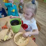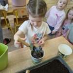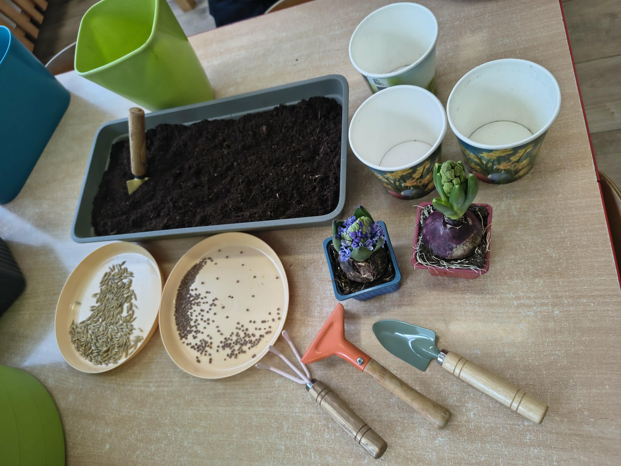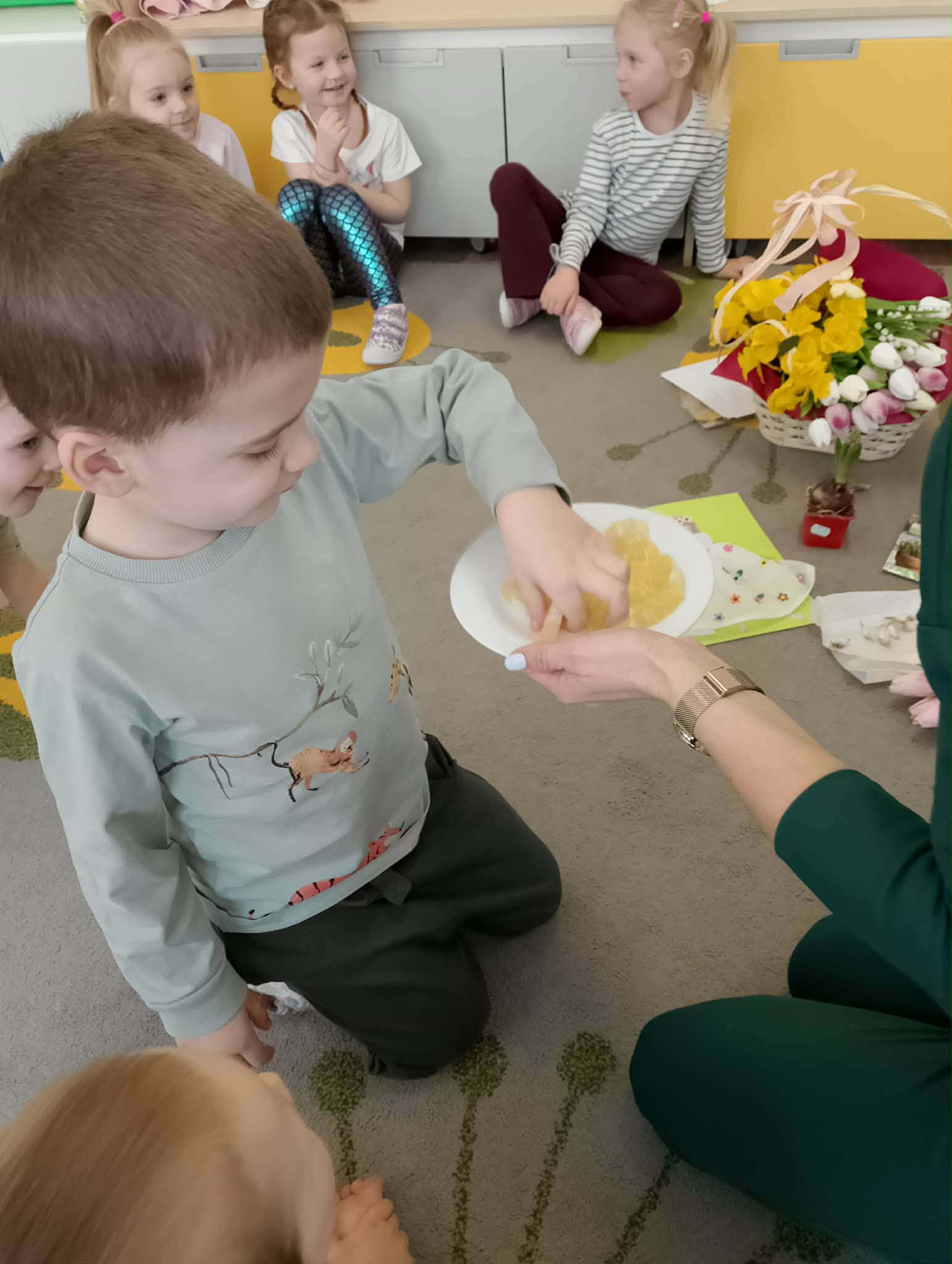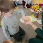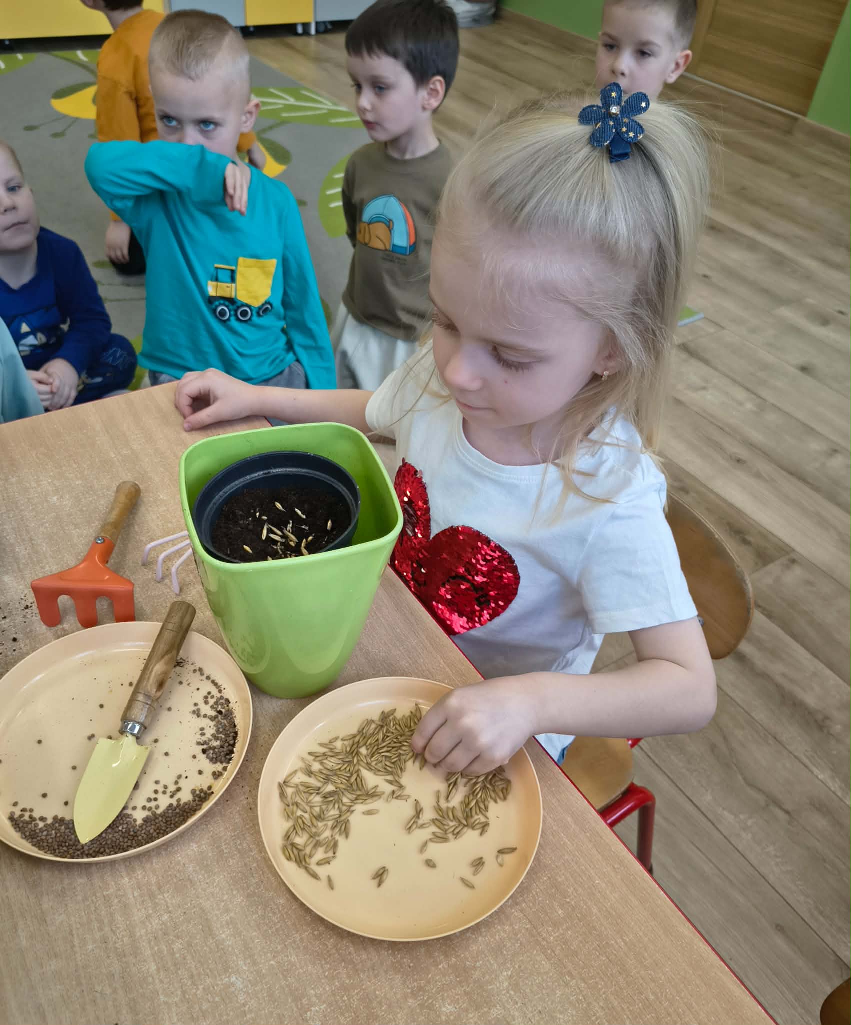 Pierwszy dzień wiosny w naszej grupie był wyjątkowy i pełen radości! Podczas wspólnych zajęć prowadzonych Metodą Porannego Kręgu dzieci wzięły udział w symbolicznym pożegnaniu zimy, poznając tradycję związaną z Marzanną i zmianą pór roku. Następnie w sali rozpoczęły się poszukiwania oznak wiosny. Dzieci odnalazły ukryte symbole – kwiaty, motyle, słońce oraz ptaki – i wspólnie odkrywały, jakie zmiany zachodzą w przyrodzie o tej porze roku. Nie zabrakło również doświadczeń sensorycznych – przedszkolaki poznawały wiosnę poprzez zapach i smak. Na zakończenie dzieci wysiały nasiona oraz zasadziły kwiaty, ucząc się, czego rośliny potrzebują do życia i jak należy o nie dbać. Był to dzień pełen nowych doświadczeń i radosnego odkrywania budzącej się do życia przyrody.